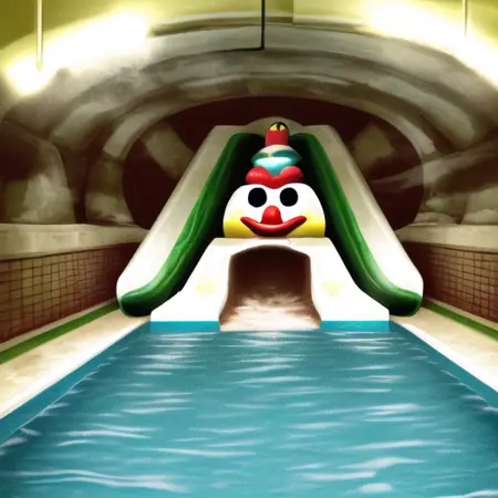 - 一个身穿比基尼的女人站在泳池中 (2) 一个身穿白色比基尼的女人在水下 (1) 一个男人在泳池中游泳,泳池墙上有一幅壁画 (1) 一个穿着比基尼的女人在水下游泳 (1) 一个穿着比基尼的女人在水下游泳 (1) 一条被水淹没的走廊,配有消防栓和消防栓 (1) 一个有瀑布和绿色地毯的泳池 (1) 一个穿着黑色泳衣的女人在泳池中漂浮 (1) 一个被水淹没的地铁站,配有长椅和台阶 (1) 一条被水淹没的走廊,中间有一根消防栓 (1) 一个有阶梯和瓷砖墙的泳池 (1) 一条有金属栏杆的长泳池 (1) 一个有蓝色墙面和天花板的泳池 (1) 一个带天窗的泳池中的螺旋楼梯 (1) 一个充满各种颜色物件的房间 (1) 一条蓝色地板和白色墙壁的走廊 (1) 一个有椅子的泳池 (1) 一个有梯子和门的黑暗房间 (1) 一个有洗手盆和窗户的浴室 (1) 一个蓝色泳池,里面有男人在游泳 (1) 一个带金属栏杆和风扇的小型泳池 (1) 一个中间有隧道的泳池 (1) 一个带瓷砖地板的浴室里的泳池 (1) 一个房间里的蓝色水池 (1) 一个有蓝色水和白色墙壁的泳池 (1) 一个带泳池和墙壁的房间 (1) 一个穿着泳装的女人坐在马桶上 (1) 一个戴着白色帽子的男人在泳池中游泳 (1) 一条铺着长蓝地毯的长走廊 (1) 一条配有洗手池和镜子一行的走廊 (1) 一个地板上有很多水的大房间 (1) 一个有梯子和水池的泳池 (1) 一个上方有天窗的泳池 (1) 一个在建筑物中长泳池里坐着的人 (1) 一个有绿色柱子的大泳池 (1) 一个有白色马桶和蓝色瓷砖地板的小泳池 (1) 一个拿着飞盘在泳池中游泳的男人 (1) 一个戴着蓝色帽子在泳池中游泳的男人 (1) 一个带瓷砖地板的泳池中的螺旋楼梯 (1) 一个人走过一个带螺旋楼梯的房间 (1) 一条通向瀑布的螺旋楼梯 (1) 一个大型泳池中的滑水道,有男人在下面游泳 (1) 一个站在泳池台阶上的男人 (1) 一个有巨型头像的泳池中的滑水道 (1) 一个泳池中的一男一女雕像 (1) 一个带喷泉的大泳池 (1) 一个紫色滑梯位于蓝色泳池中 (1) 一个紫色充气泳池和紫色充气圈 (1) 一个有洗手盆和浴缸的浴室 (1) 一个带有梯子的泳池中的滑水道 (1) 一个漂浮在水池中的红球 (1) 一个穿着比基尼的女人趴在水上 (1) 一个被水淹没的地下室,配有消防栓和消防栓 (1) 一个有楼梯和瓷砖地板的房间 (1) 一个蓝色瓷砖浴室中的马桶,带排水口 (1) 一个带有玩具熊的彩色滑梯的泳池 (1) 一个带蓝色滑梯的泳池中的滑水道 (1) 一个蓝色和白色的管道在泳池中 (1) 一个天花板上挂着冰柱的泳池滑水道 (1) 一个有狗在里面的泳池滑水道 (1) 一个大型水上乐园中的蓝色泳池滑水道 (1) 一个背景为天空的泳池,有天空背景 (1) 一个带玻璃地板和扶手的浴缸 (1) 一个瓷砖浴室中的大型蓝色管道 (1) 两个穿黄色泳衣的人站在泳池中 (1) 一个有桌子和长椅的房间 (1) 一个带一排长椅的房间 (1) 一个带大型蓝色瓷砖泳池的泳池 (1) 一个戴泳镜的男人在泳池中游泳 (1) 一个白色瓷砖墙和蓝色泳池的泳池 (1) 一个有长椅和上方灯光的泳池 (1) 一个男人躺在泳池里的粉色充气床垫上 (1) 一个有马桶和霓虹灯的浴室 (1) 一个带大型玻璃泳池的泳池 (1) 一条被水淹没的走廊,配有书架和书柜 (1) 一群人漂浮在泳池中 (1) 一个在泳池中游泳,周围有站着的人的男人 (1) 一条带一排窗户的长走廊 (1) 一个人在隧道中的倒影 (1) 一幅带瓷砖地板的泳池照片 (1) 一条带有绿色灯光的长走廊 (1) 一个带有红黄浮圈的泳池 (1) 一个带长水线的大型泳池 (1) 一个黄白地板的地铁站 (1) 一个窄长泳池,带白色窗帘 (1) 一个带窗帘和窗台的窗户 (1) 一个有弯曲浴缸和瓷砖墙壁的浴室 (1) 一个里面有三个小便池的泳池 (1) 一群鲨鱼在被淹没的商场中游动 (1) 一辆汽车沉在停车场中 (1) 一条小船在小泳池中 (1) 一个标有“TV”的被水淹没地铁站 (1) 一个泳池中映出建筑的倒影 (1) 一个泳池中有一池水和一排树 (1) 一个带有彩色管状的泳池滑水道 (1) 一个挂在管道上的小丑面具 (1) 一个假面具正将水倒入泳池 (1) 一个彩色瓷砖浴室中,马桶座位上有笑脸 (1) 一个彩色隧道上的小丑面具 (1) 一个游乐区中带彩色管状的长滑梯 (1) 一个上面有笑脸的滑水道 (1) 一个带泳池和彩色花瓶的隧道 (1) 一个两侧有小丑头的隧道 (1) 一个带有彩色管状滑下的滑水道 (1) 一个滑水道旁边墙上的一张小丑脸 (1) 一个滑水道中,有一个人在冲浪板上 (1) 一个有小丑脸的滑水道 (1) 一个带蓝白管状的滑水道 (1) 一个在水中的小丑雕塑,配有滑梯 (1) 一个站在滑水道上的小丑雕塑 (1) 一个带玩具人偶的泳池滑水道 (1) 一个泳池中的玩具小丑 (1) 一个从滑水道中伸出水管的滑水道 (1) 一个有水流出的泳池 (1)
