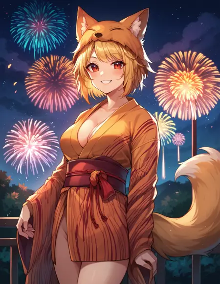 The triggers are "1girl, M00nfl0wer, bottomless, fox tail".