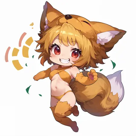 すべてを正しく得る確率を高めるために、より多くのタグを追加できますが、ほとんどのモデルでは通常不要です。「blonde hair, red eyes, animal hat, fox ears, animal hands, animal legs, pussy」のようなタグを推奨します。