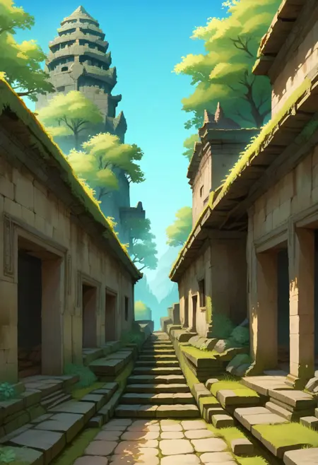 在SD1.5中,你可以做一件很酷的事(我在为《金太阳》角色制作背景时发现的):在提示词的背景标签中加入“吴哥窟废墟”——它几乎能与任何元素完美融合,营造出迷人的奇幻氛围。可惜的是,XL和PXL并没有这种能力,甚至无法识别这个关键词的实际用途。我怀疑它很难达到SD1.5默认效果的水平,但我仍想试试。请发布你制作的图片(即使失败了也没关系):看到别人使用我的LoRA却无法看到他们创作的作品,让我感到难过;而每一位上传图片的用户都能激励我去训练未来的LoRA(需要10位用户才能回本)。这种效果与风格LoRA搭配使用最佳(我不清楚为什么)。