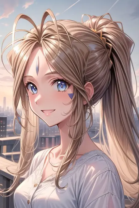 ベルダンディの顔の模様とその他の顔の特徴はすべて「Belldandy」タグに含まれているため、追加の説明は不要です。このタグにさらに追加すると、形状や色が崩れる可能性があります。彼女の衣装は含まれていません。彼女の公式な女神の衣装だけを訓練することもできましたが、他の衣装を生成する際に非常に制限的だと感じました。