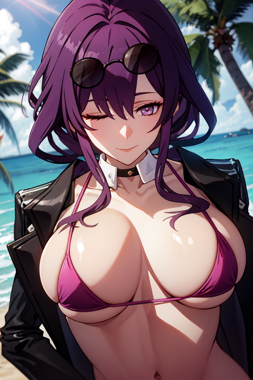 편집: 잊고 지웠는데, 반드시 프롬프트에 "black jacket, black shorts and collared shirt"을 포함시켜주셔야 AI가 그녀의 옷차림을 정확히 이해할 수 있습니다. 저의 경우 이 항목 없이도 작동했지만, 항상 그런 것은 아닙니다.