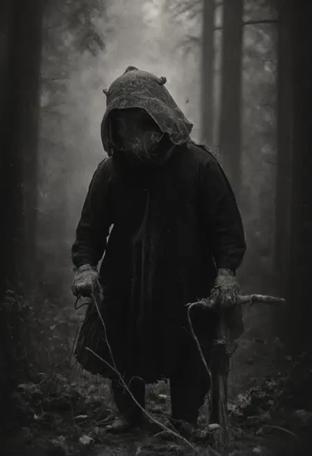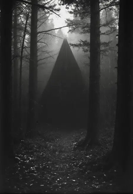图像颗粒粗糙、黑白灰暗且扭曲,每一张都弥漫着阴森的气息,仿佛由被往昔灵魂附身的相机所捕捉。