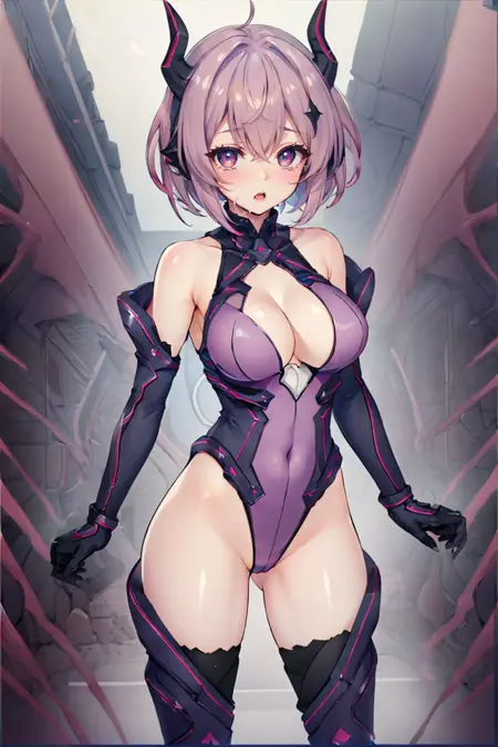thighhighs, gloves, elbow gloves, boots, thigh boots, cleavage,clothing cutout, cleavage cutout,bare shoulders,horn, ((leotard))