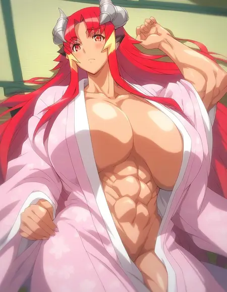 アダルトアニメ「漆黒のシャガ」より紅です。リクエストによる作成となります。本当は足が獣のような多重関節になっているキャラなのですが、依頼は下半身を普通の人間の足にしてくれというものだったので、あえて足の映ってるところは素材に使っていません。ふともものあたりまでならAIはストッキングと解釈してくれたのでそのまま学習させました。