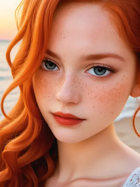 다양한 모발 색, 눈 색, 피부 색을 가진 여성의 사진으로 학습하되, 대부분은 붉은 머리와 파란 눈을 가진 사진을 사용하세요.