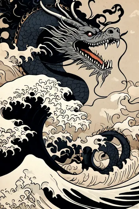 该Lora模型适配HunYuanDit模型,为有趣的魔幻浮世绘风格模型,支持中英文提示词