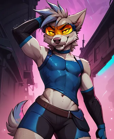 BBS 만화 및 게임의 주인공 강아지로, 의심스러운 내용이 들어 있는 슈퍼 소커를 들고 있다.