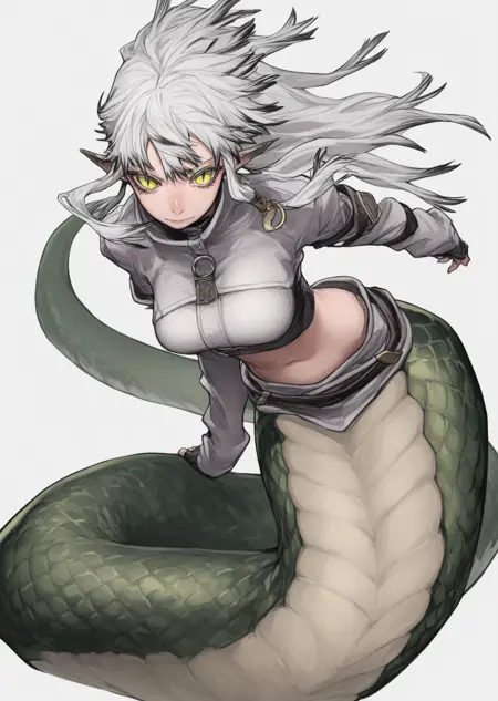 반은 사람, 반은 뱀. 이 LoRA는 다른 캐릭터를 라미아로 변환합니다.