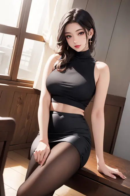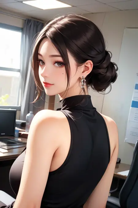 ・若生成效果不相似,请添加 "large breasts, black hair, long hair"。
