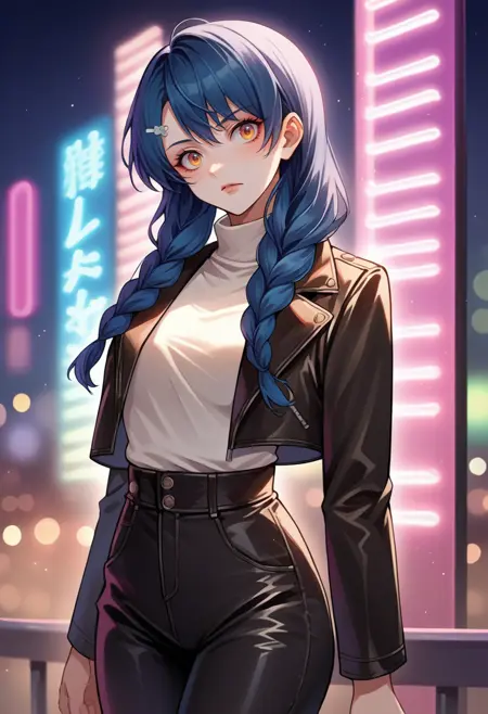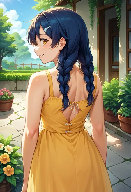 MegumiTadokoro, long hair, twin braids, hairclip, red bowtie, blue blazer, plaid skirt, yellow skirt
