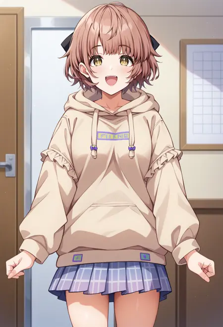 ikuta haruki, brown hair, short hair, yellow eyes, hair bow