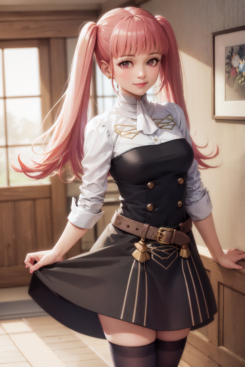 Garreg Mach Monastery Uniform: twintails, hildauniform, blue thighhighs