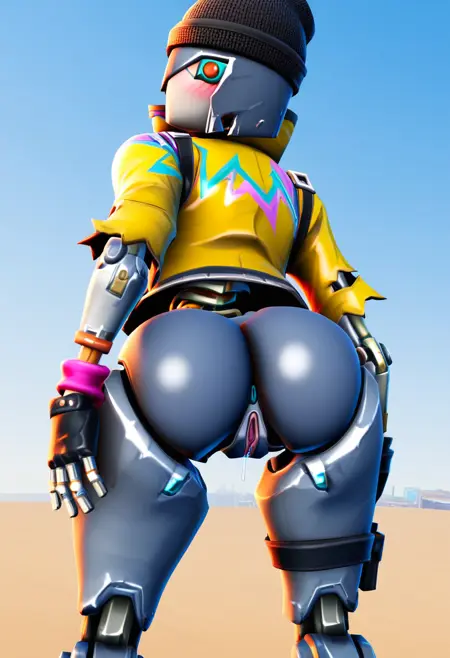 I recommend the following prompts: rebelfortnite, robot girl, robot, yellow jacket, joints, mechanical legs, robot joints, black headwear, hat, jacket