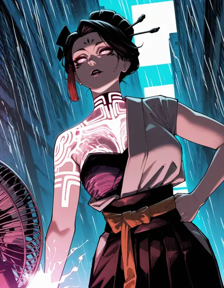 示例提示: “JJK 动画风格,高对比度,动态光影,真实纹理,鲜艳色彩。”