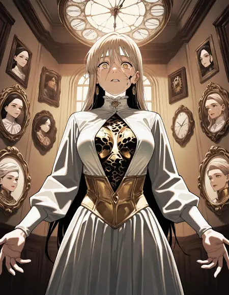 聚焦关键特征: 定义角色的核心要素——面部特征、疤痕、配饰等,使其成为图像的中心。