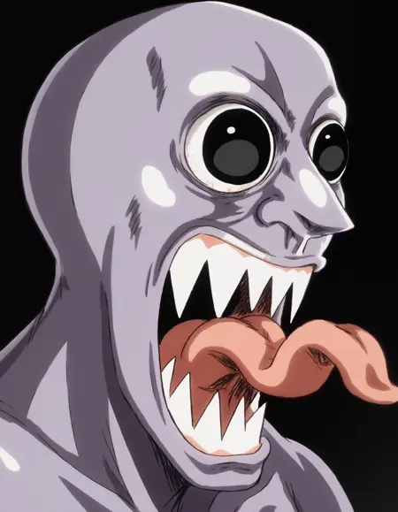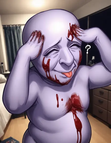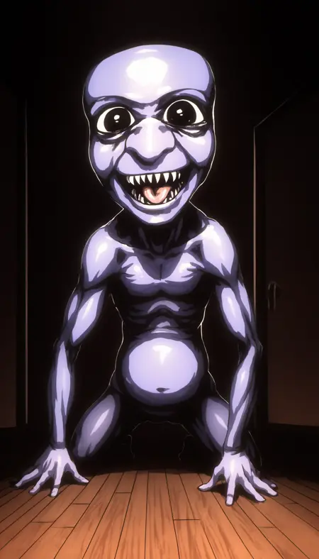 Ao Oni用のトリガー:Ao Oni, 1boy, solo, monster, purple skin, large eyes, black eyes, large nose, naked (PONY) (ILLUSTRION)