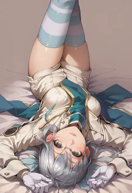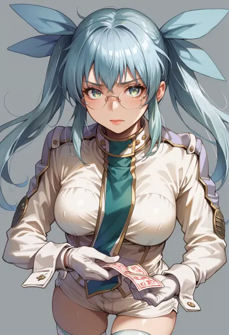 For clothese add "military uniform, shorts, striped thighhighs, ribbon, white gloves, wrist cuffs, necktie"