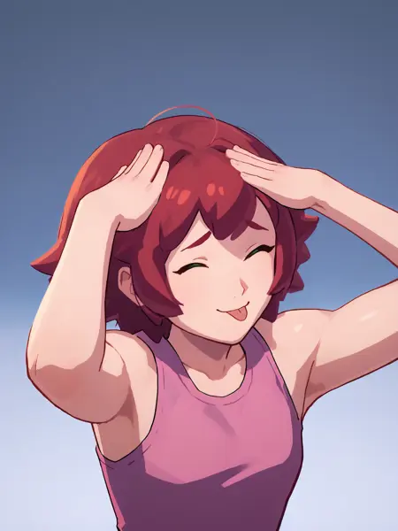 v0 Problems: backpack thing sometimes shows up on the pink shirt in times you don't need it, adding backpack and backpack straps to negative prompt may help.