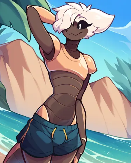 推奨プロンプト: 白い髪、黒い白目、白い目、濃い肌、アンスロ、節足動物の少年、片目を覆う髪、毛皮の襟/体毛、節足動物の腹部、昆虫の翼