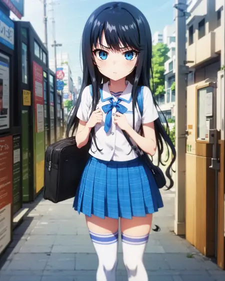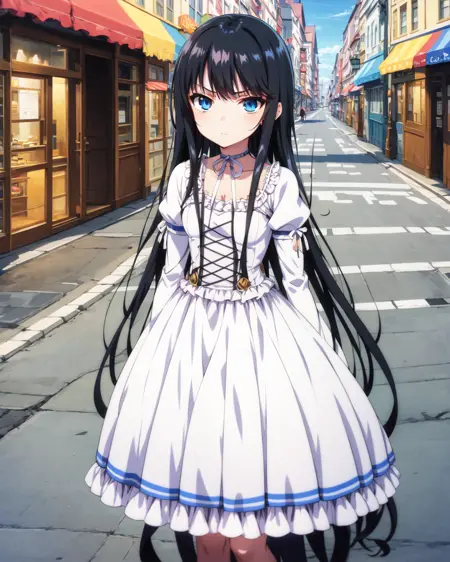 | Trained Words | natsuki_minamiya,1girl,solo,long hair,blue eyes,black hair,very long hair,Copied! dress,choker,frills,black dress,long sleeves,ribbon choker,neck ribbon,black pantyhose,Copied! choker,puffy sleeves,white dress,white ribbon,neck ribbon,long sleeves,dress,ribbon,juliet sleeves,ribbon choker,Copied! skirt,shirt,thighhighs,school uniform,white shirt,short sleeves,pleated skirt,bag,blue skirt,plaid,blue bow,plaid skirt,school bag,Copied! |