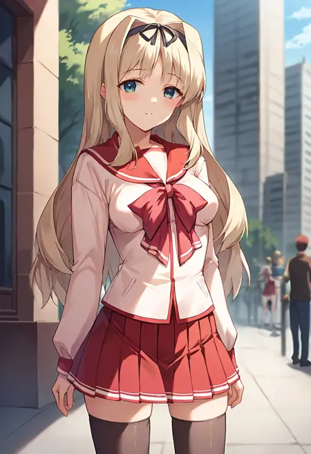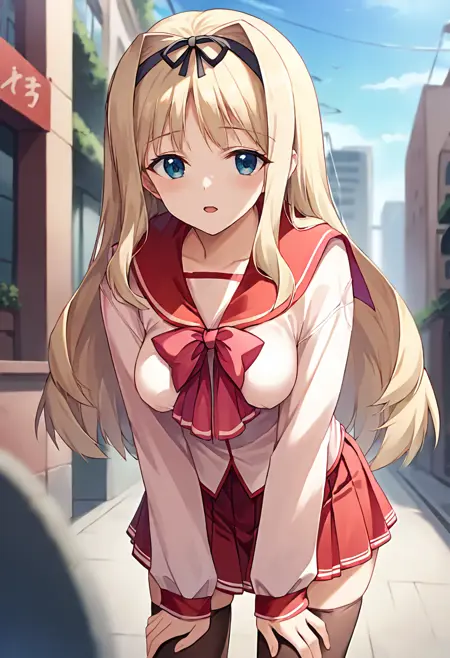 触发词: ct_sasa, 长发, 金发, 黑色发带,