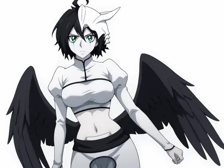 (The trainer is weird about the arrancar mask, I usually refer to it as "mask_on_head" then neg out "white_hair" and "helmet" - I think it's something about it being an asymmetric feature)