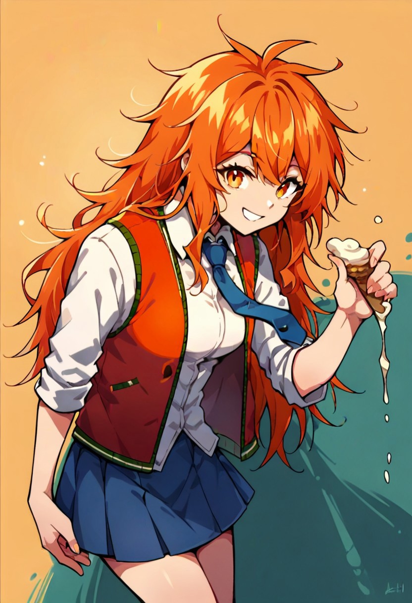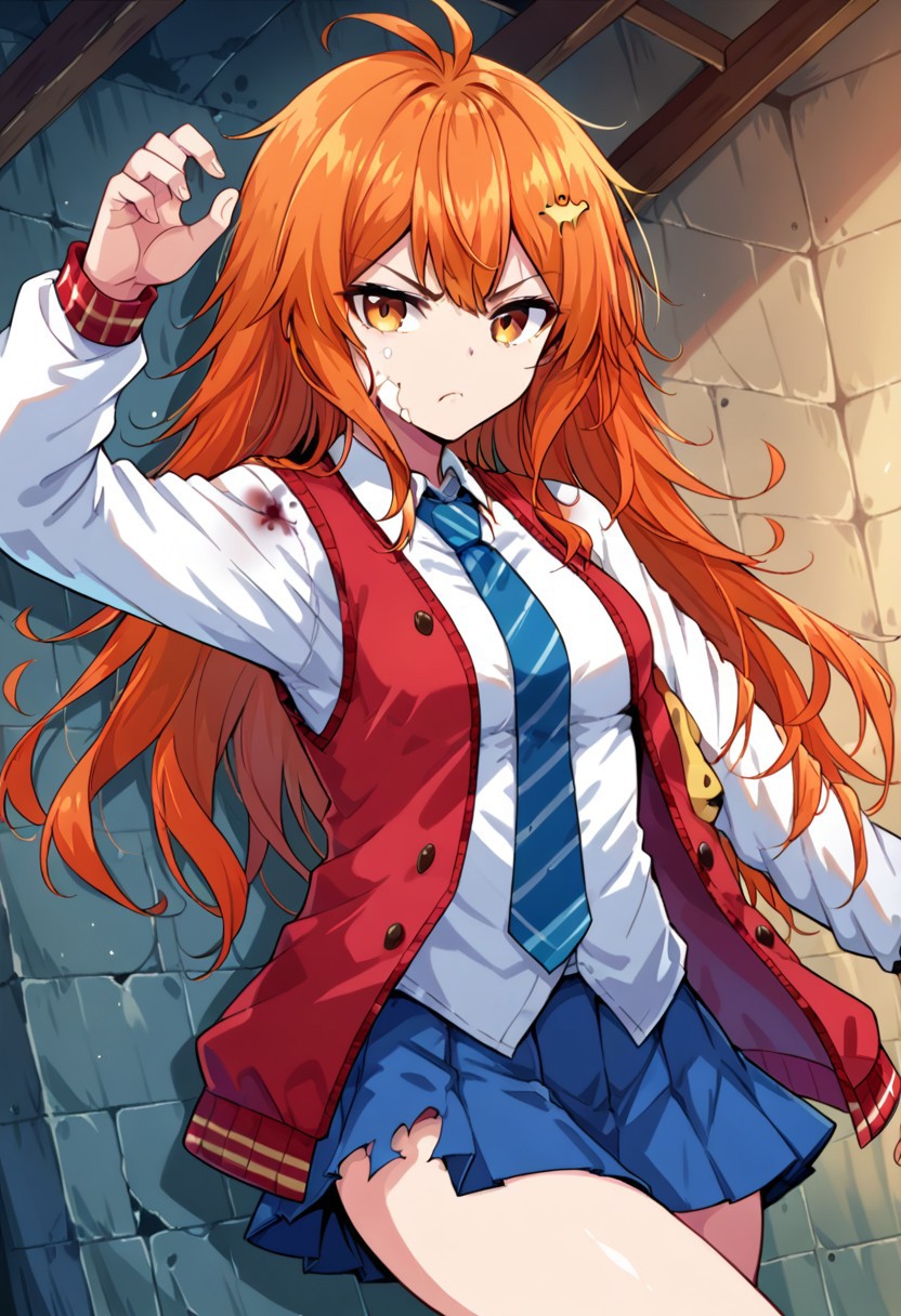 Elmira Mcartney, 1 girl, scarlet hair, messy hair, long hair, (orange eyes: 1.2)