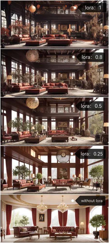 자체적인 명확한 스타일을 가진 건축 모델과 함께 작업할 때 LoRA 간섭은 약해 보인다. 예를 들어 LW_Architecutral_MIX와 함께 작업할 때 단풍나무는 더 노랗게 보일 수 있다? LOL