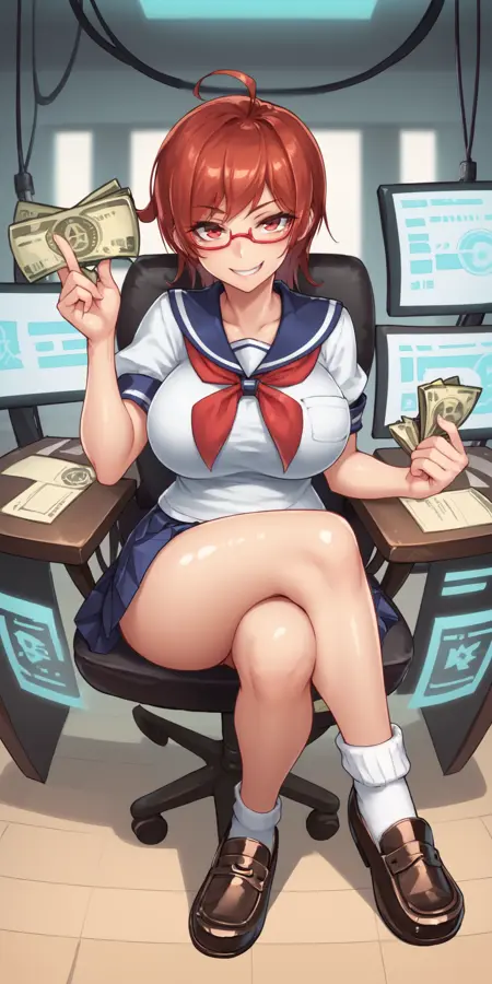 Main tag: infochan, red hair, short hair, red eyes, bangs,red-framed eyewear, ahoge.