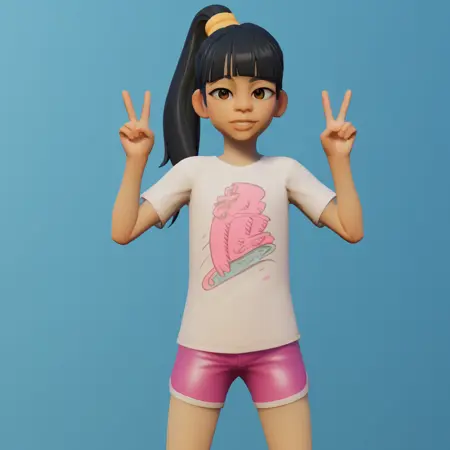 AllyHoops, 1girl, solo, black hair, brown eyes, ponytail, blunt bangs,