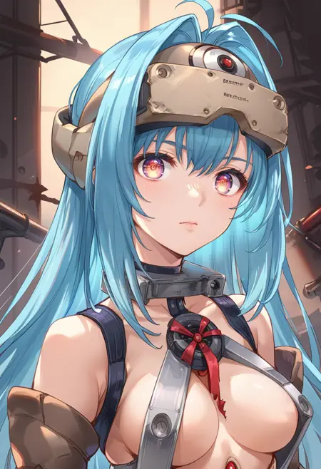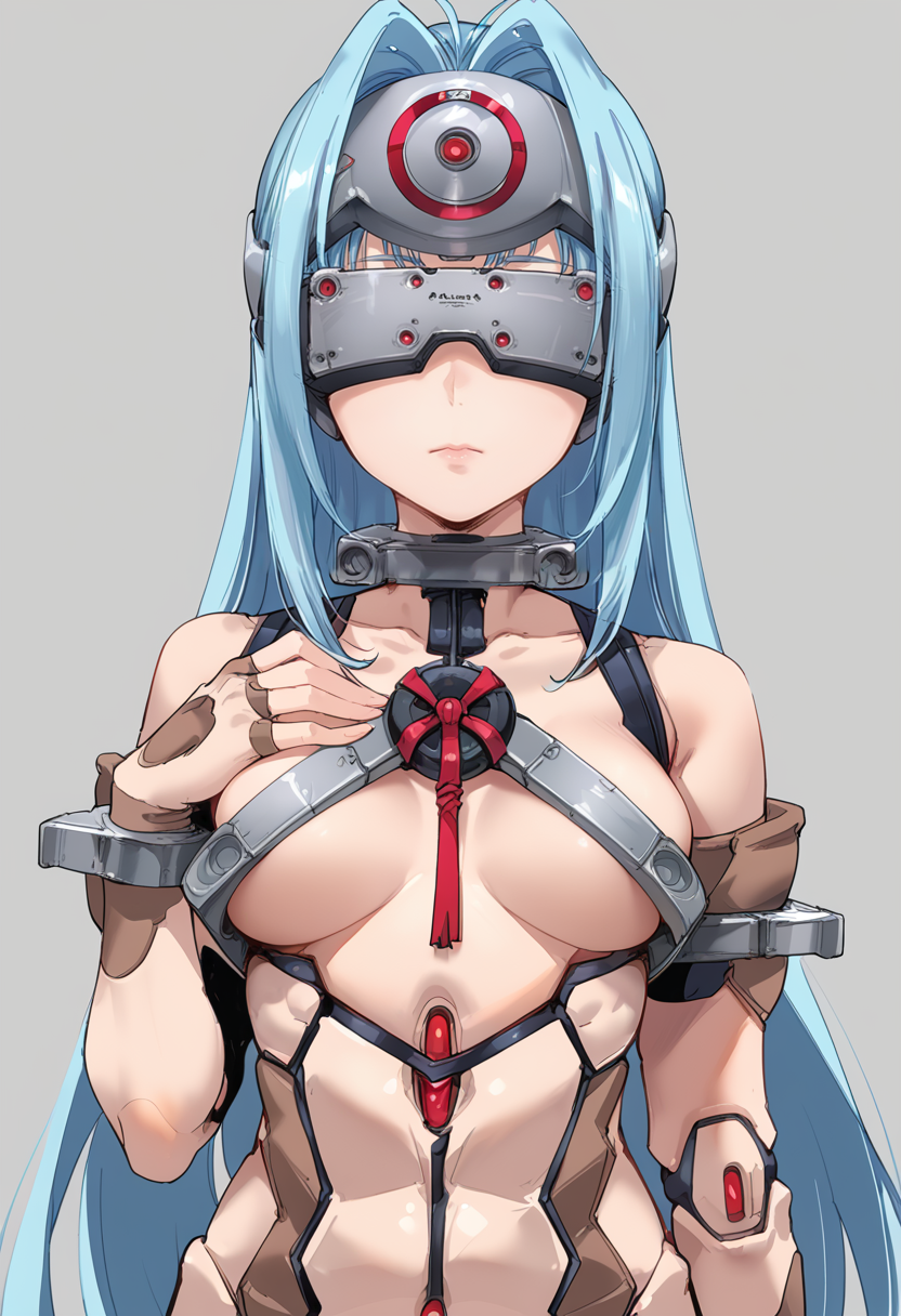 タグ(その他):陰部なし、乳首なし、目隠し、前髪の直線、mechabare、切断者、機械部品、損傷、白髪
