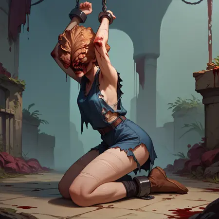 有用なタグ: sharp teeth, torn clothes, blood