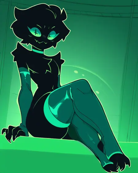 推荐提示词: 黑发、绿色巩膜、可爱、黑皮肤、大腿、爪子、绿色阴茎、外星阴茎、带刺阴茎