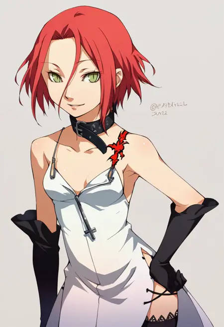 Persona 4 포트레이트 스타일. Pony Diffusion V6 XL로 학습됨.