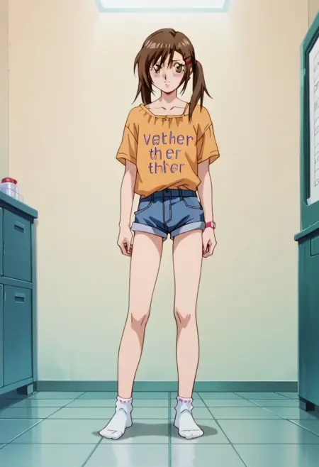 负面提示: 长脖子(由于训练数据中大量正面头像,脖子容易变得异常长,可通过负面提示轻松抑制),白衬衫(不知为何,预览图像总是想把她的衬衫改成白色而非橙色——即使第一轮训练结果已非常接近她的外观,但10张图中衬衫颜色全错),阿斯兰·萨拉(双马尾傲娇少女+机甲题材很容易生成她,若某个标签组合导致她占主导,请将她设为负面提示),赛博空间(数据中出现频率足够高,若不特别说明,它会成为默认背景;你通常只需提供其他背景细节即可,但此提示也有效),手插口袋(不知为何模型总默认采用这个姿势)