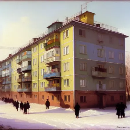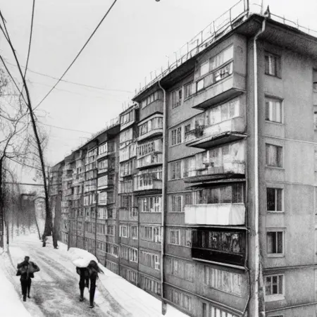 The model is trained on panel-constructed apartment blocks — so-called Khrushchevka buildings or more recently Panelki (Панельки). As they have been built in ambudance all over the USSR and the Eastern Block, a large amount of people living inside the post-soviet region have been raised in them and thus panelki have left a strong trace in their memories. Their grayish look and cheap, mass-produced structure made them the symbol of futurelessness, loneliness inside the crowd and depression. In recent times, the repeating pattern, decaying and crowded nature gained them the reputation of eldritch structures, for example, reflected in the fandom of Samosbor where the action happens inside the infinite Gigakhrushchevka.