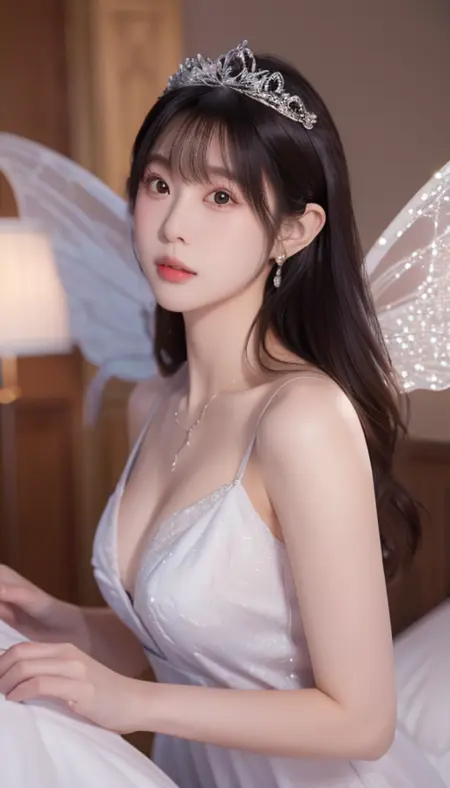 ,sheer dress, fairy wings, necklace, tiara,fairy ears