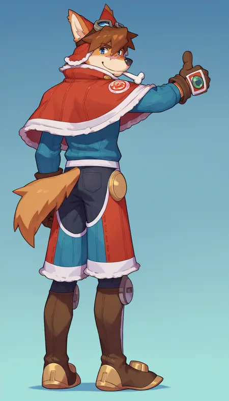 服装:redattire、red headwear、头戴护目镜、短披风、靴子、手套