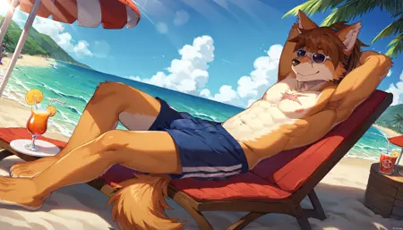 有用标签:狗男孩、1boy、双色毛发、棕色头发、狗耳、动物鼻子、蓝眼睛、狗尾、脸上有疤痕