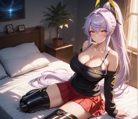 角色: 浅紫色头发,非常长的头发,黄色眼睛,头饰,高马尾