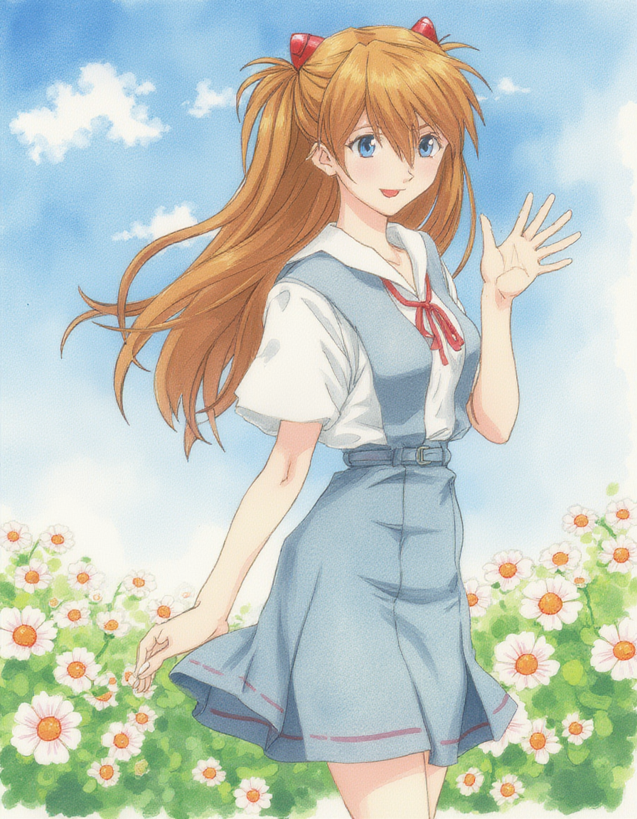 1995年に放送が始まったアニメ『新世紀エヴァンゲリオン』のキャラクター、アスカを紹介します。私の最初のFlux LoRAです:Flux - Asuka。