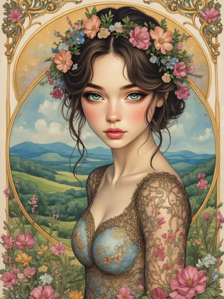一般的な「MidJourney」の美観に加えて、アール・ヌーボー、水彩、油彩パステルの技術から強い影響を受けています。