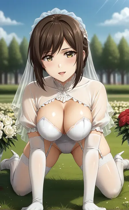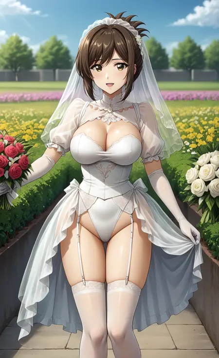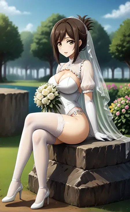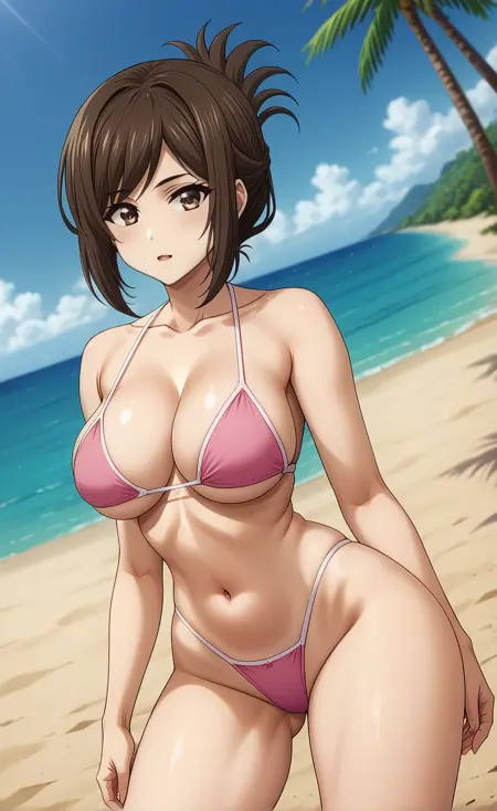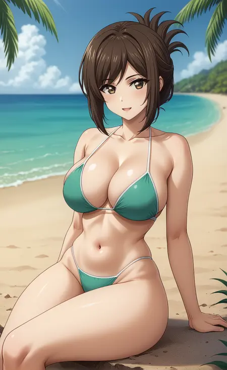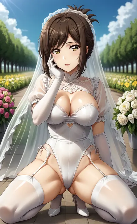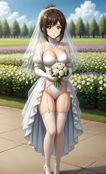 (短发, 棕发, 侧发, 折叠马尾, 棕眼),