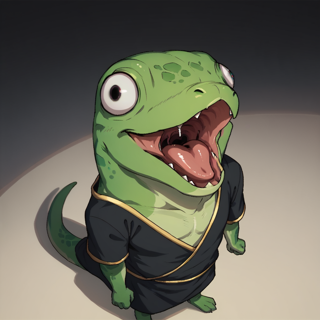 "Source_furry"는 생성에 도움이 됩니다. 제가 사용한 태그는 "prikkikiti, green skin, lizard tail, nostrils"였지만, 제 테스트에서는 "prikkikiti, green skin"만으로도 충분했습니다.
