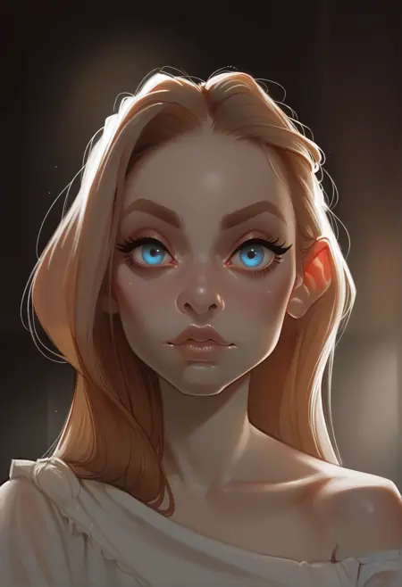 For more big eyes and more cute face use tag 'cute face' in positive prompt