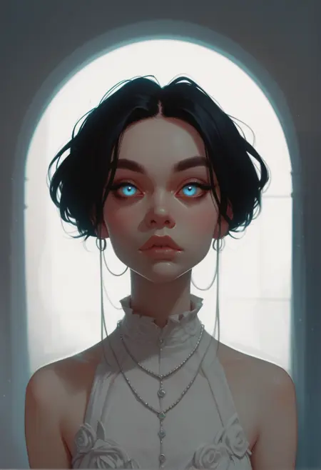 For more big eyes and more cute face use tag 'cute face' in positive prompt