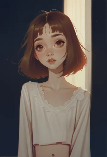 より大きな目でよりかわいい顔にするには、ポジティブプロンプトにタグ 'cute face' を使用してください。