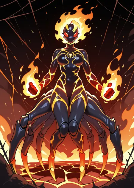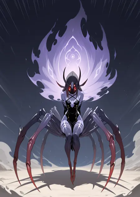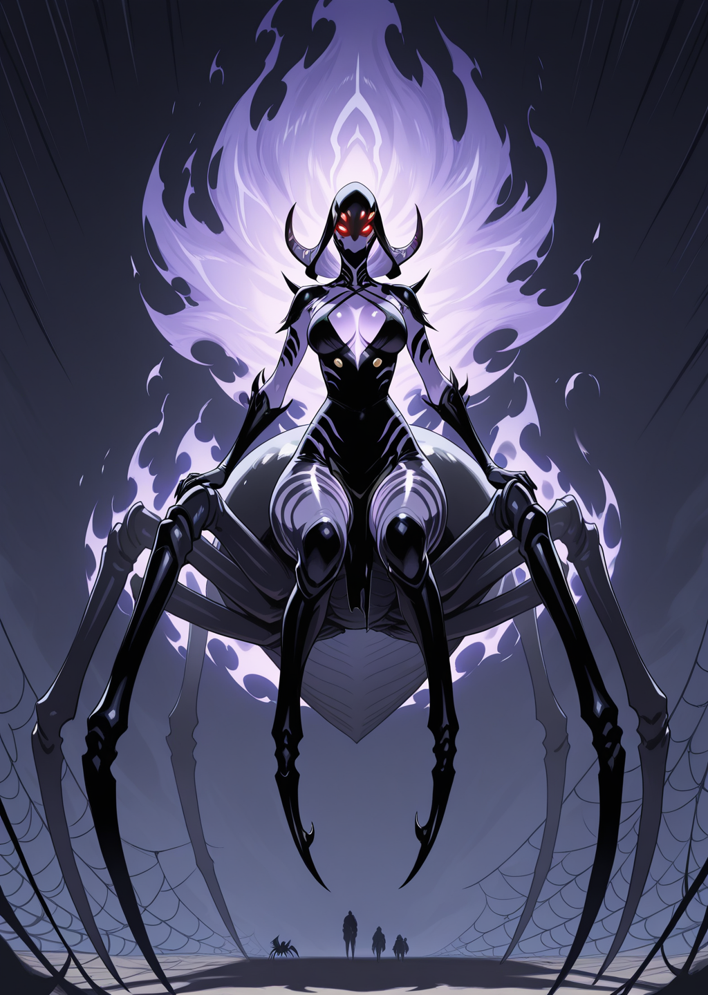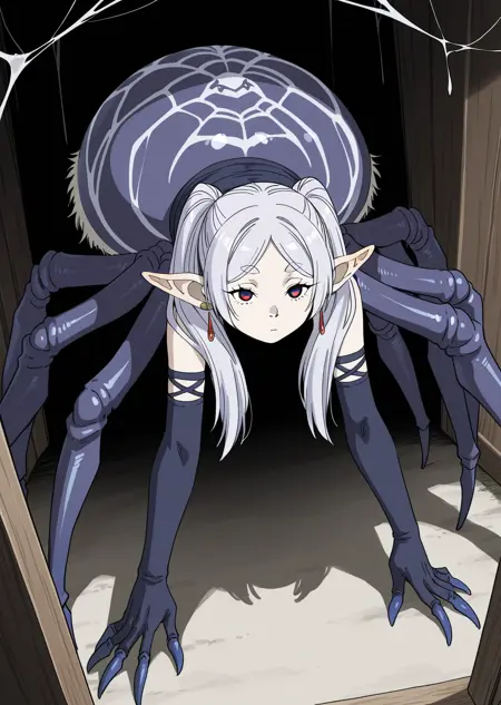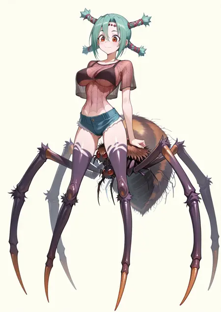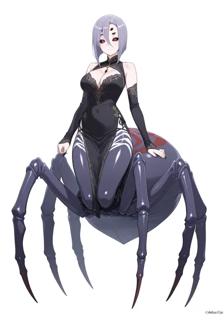 프롬프트: arachne, monster_girl, spider legs, spider_eyes, spider_body, monster girl, spider girl,