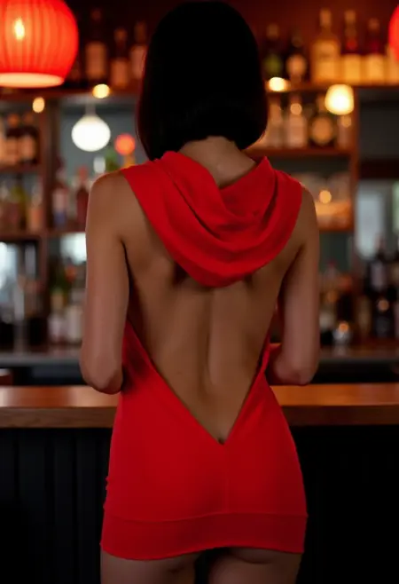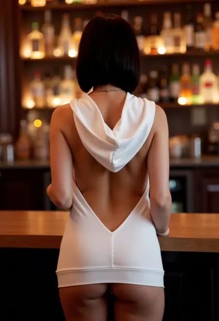 hud_h00diedrss, short sleeveless backless hoodie minidress with a plunging back, showing upper butt crack
